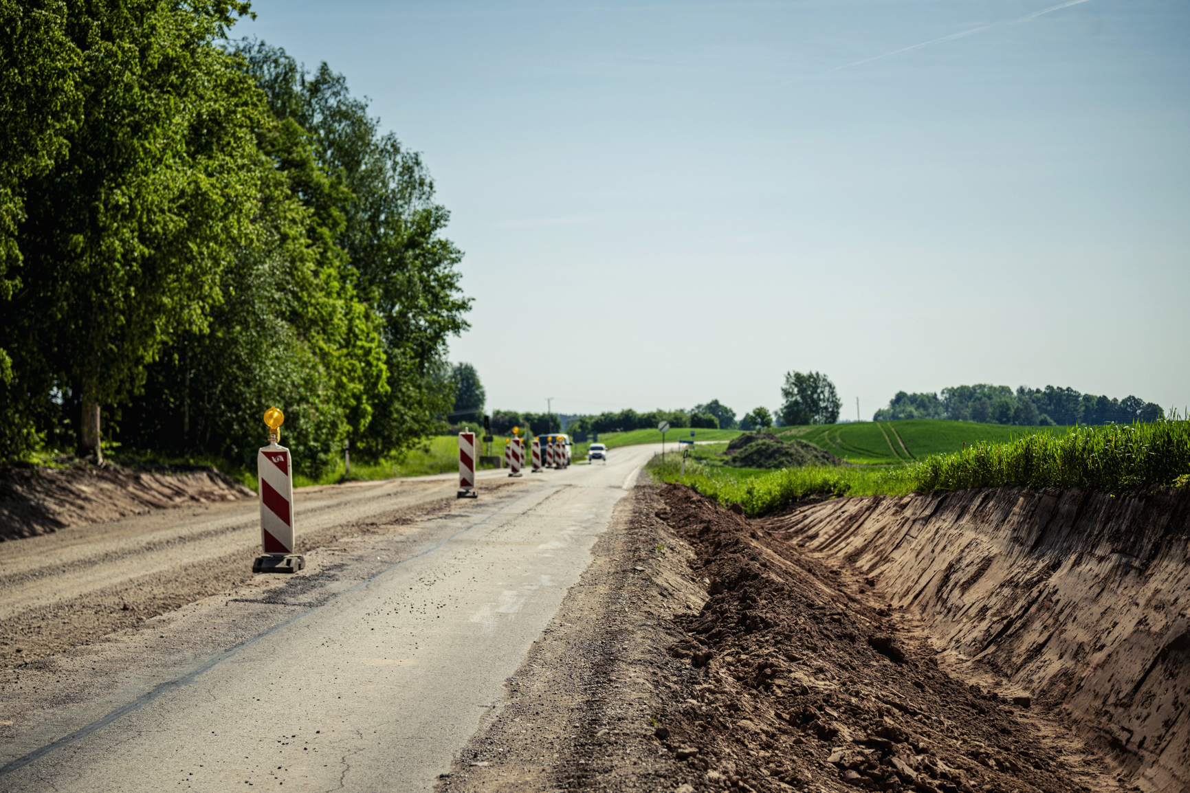 Fotoreportāža: pie Zemītes notiek ceļu būvdarbi; ar satiksmes ierobežojumiem jārēķinās līdz gada beigām