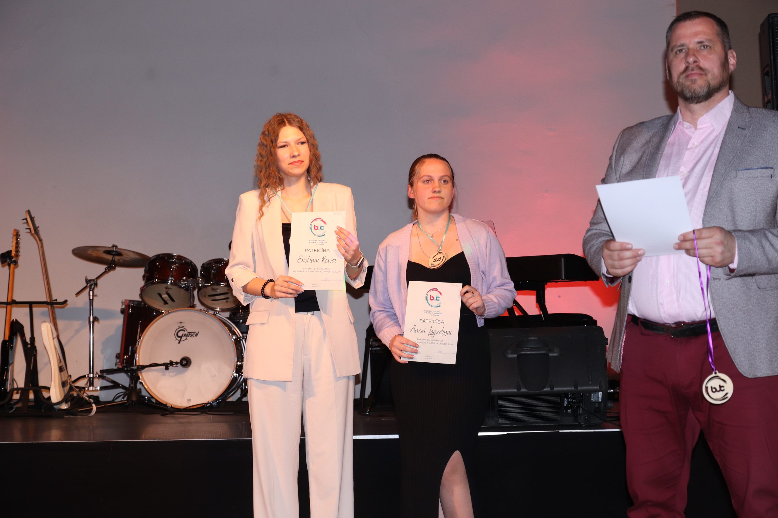 Nominācijai “Gada jaunietis Kuldīgas novadā” tika izvirzīti trīs jaunieši. Pateicību ieguva Beāte Žežulka no Kabiles un Ivonna Kalnmale no Pelču pagasta. “Gada jaunietis Kuldīgas novadā 2024” titulu ieguva Patrīcija Jonele no Ēdoles. Patrīcija mācās Ēdoles pamatskolā, aktīvi iesaistās kā skolas, tā ārpus mācību aktivitātēs. Darbojas “EKO” padomē, skolas ikdienu atspoguļo skolas sociālajos tīklos, mācās mūzikas skolā, “dīdžejo” apmeklē volejbola pulciņu, dejo JDK “Sprigulis” un ir viena no aktīvākajām Ēdoles jauniešu “DEPO” jaunietēm. Patrīcija ar savu enerģiju rāda piemēru un iedvesmo arī citus jauniešus.