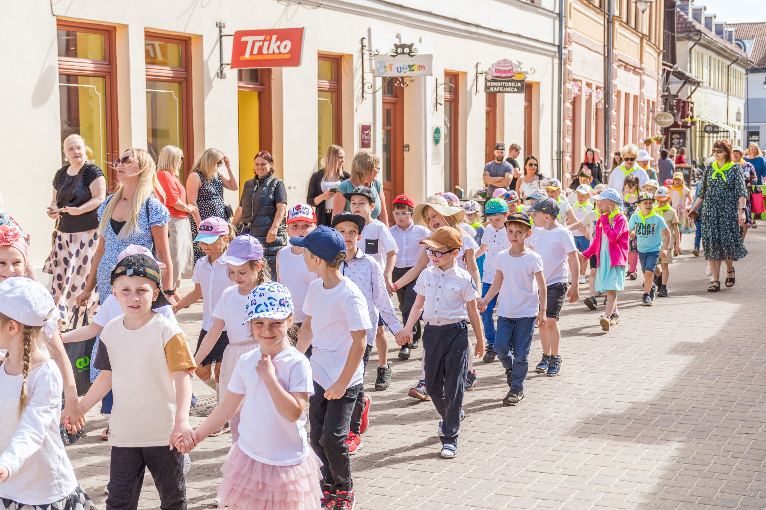 Mazie dziesmu un deju svētki tika ieskandināti ar svētku gājienu. Tas sākās no Liepājas ielas gala (no kajenīcas “Kursas Zeme”), tālāk dalībniekiem virzoties pa Liepājas, Smilšu un Pētera ielām, bet galamērķis – Pilsētas estrāde. Mazos dziedātājus un dejotājus gājienā atbalstīja arī prāvs vecāku un līdzjutēju pulks. Priecīgo brīdi, atrašanos un uzstāšanos uz Pilsētas estrādes skatuves, varēja izjust vairāk nekā 400 jaunie dziedātāji un dejotāji.