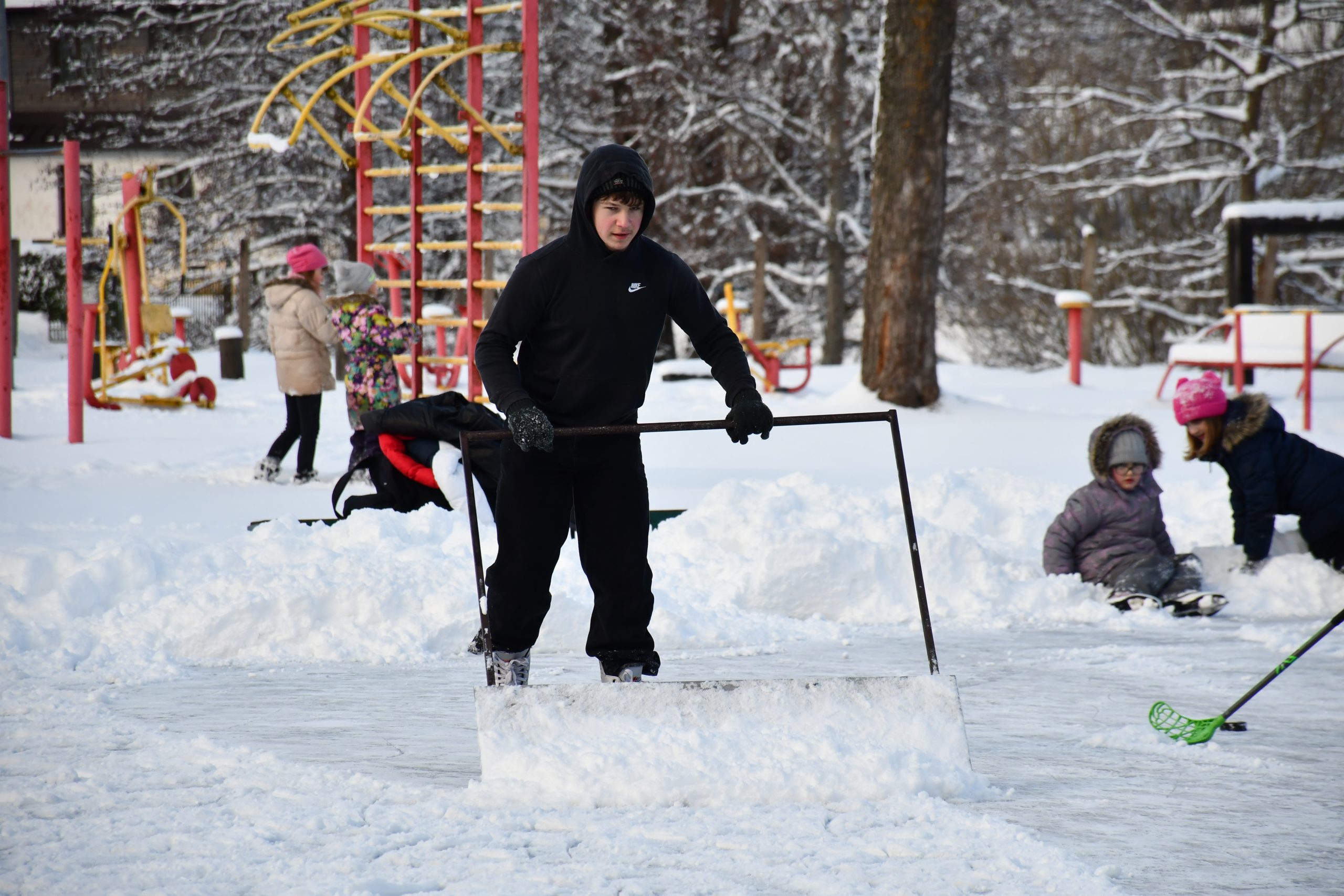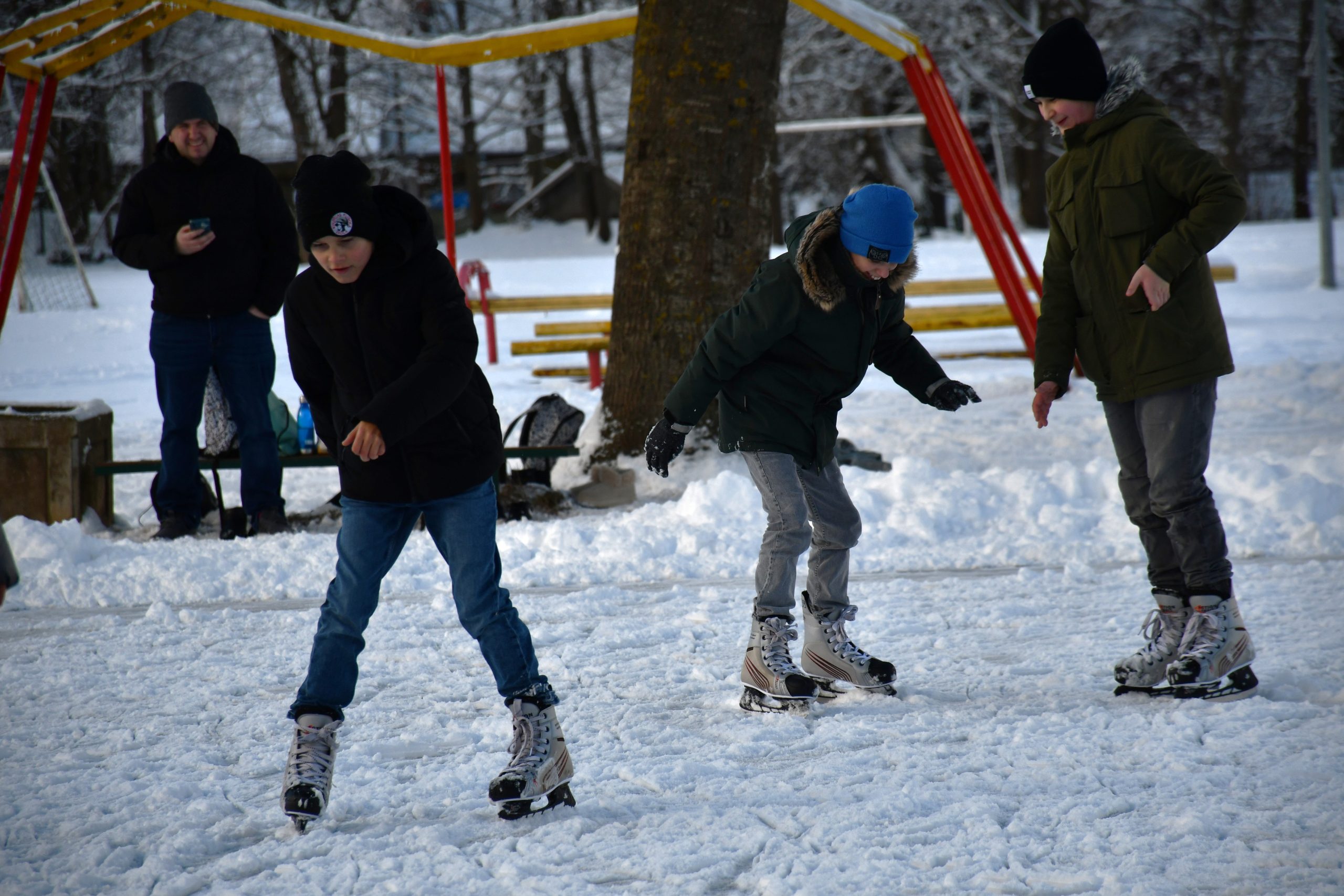 Kuldīdznieki steidz baudīt ziemas priekus slidotavā