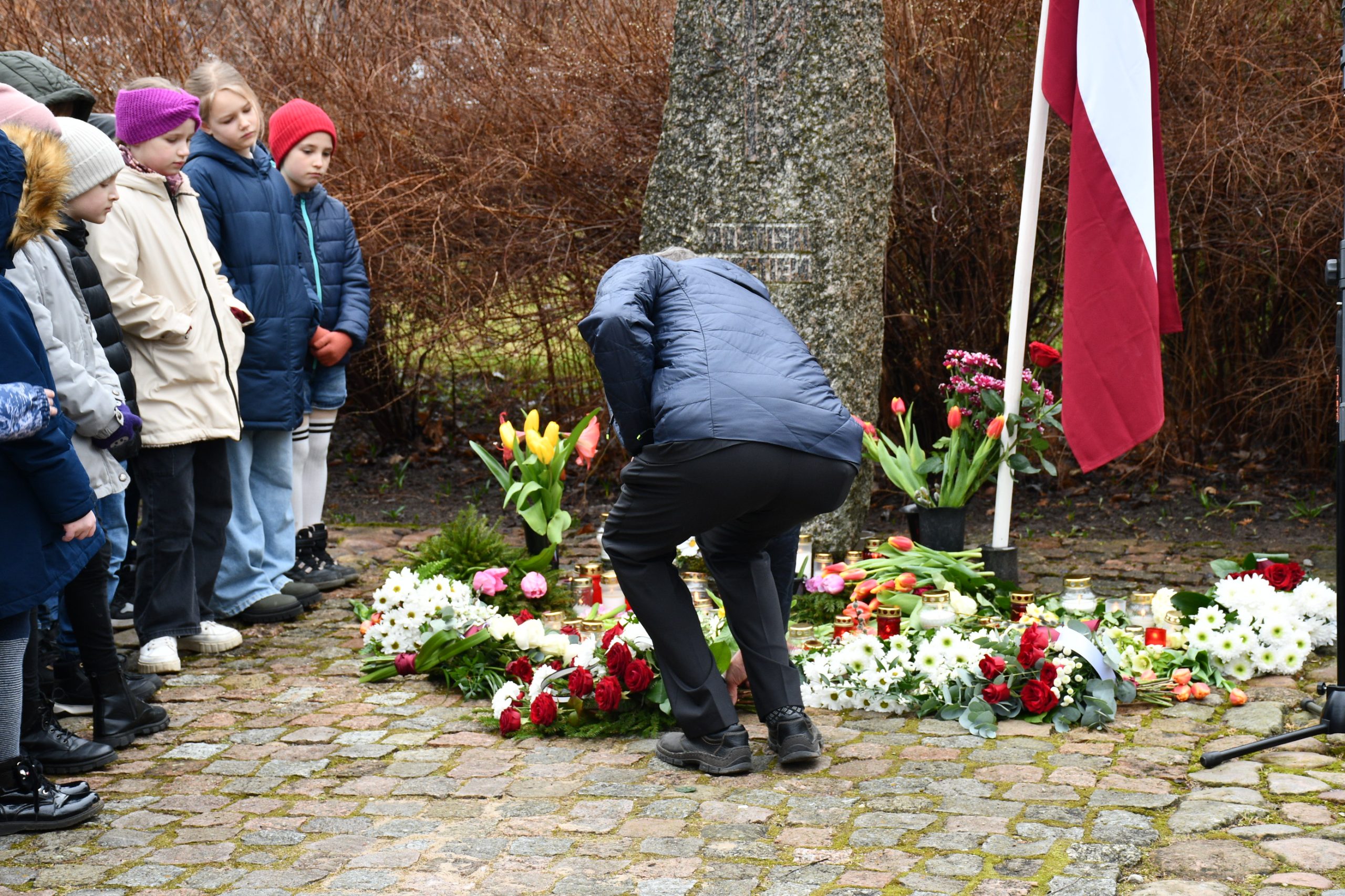 - Lēnās komunistiskā genocīda upuru piemiņas brīdis, ziedu un svecīšu nolikšana pie represēto piemiņas akmens norisināsies 12.45.