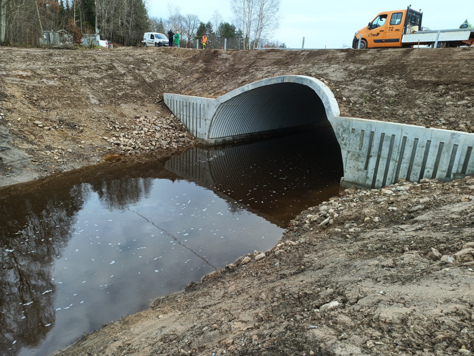 Laikā no 2024. gada decembra līdz 2025.gada marta beigām notiek būvprojekta izstrāde un skaņošana institūcijās. 03.03.2025. saņemts institūta "BIOR" atzinums par izstrādātā caurtekas risinājuma atbilstību EJZAF projekta nosacījumiem - piemērotību zivju migrācijas nodrošināšanai.