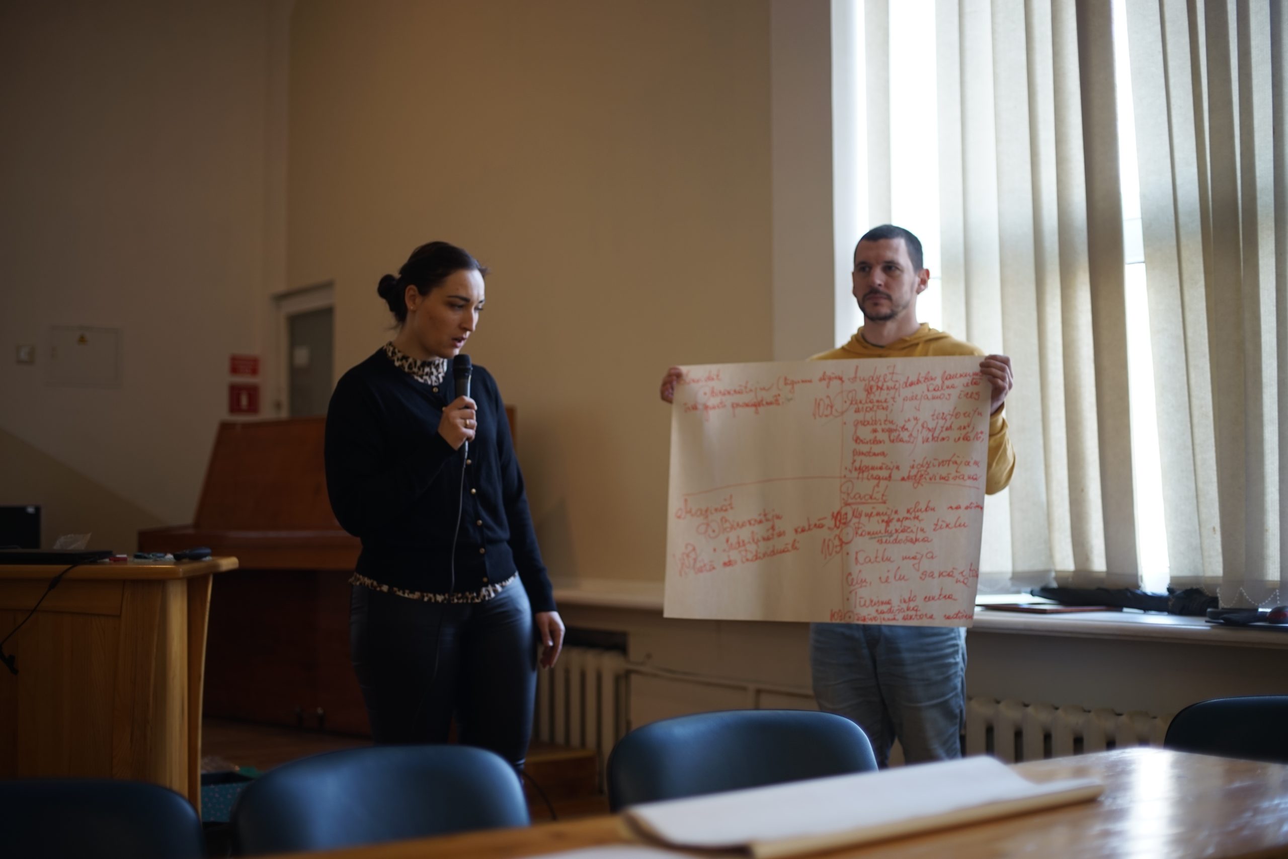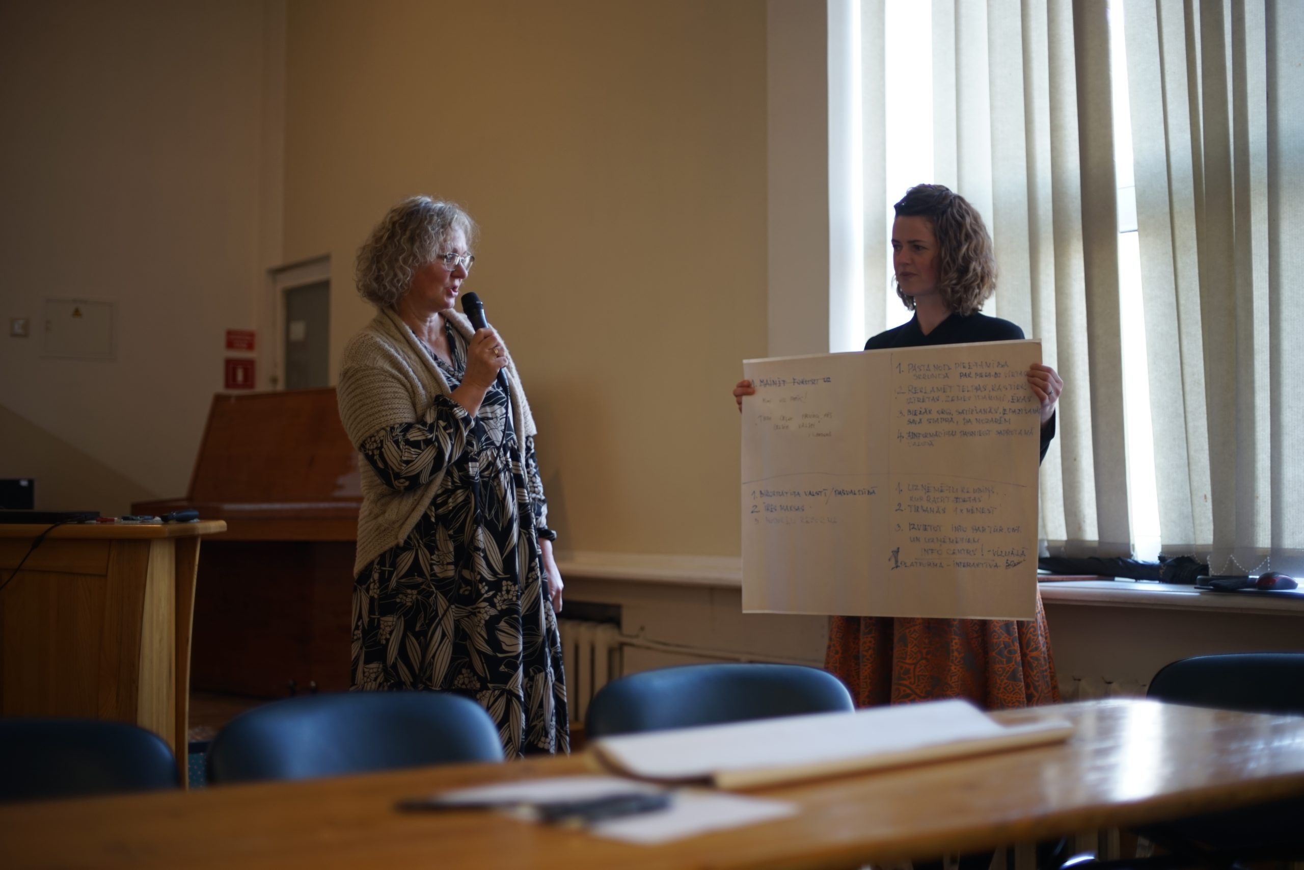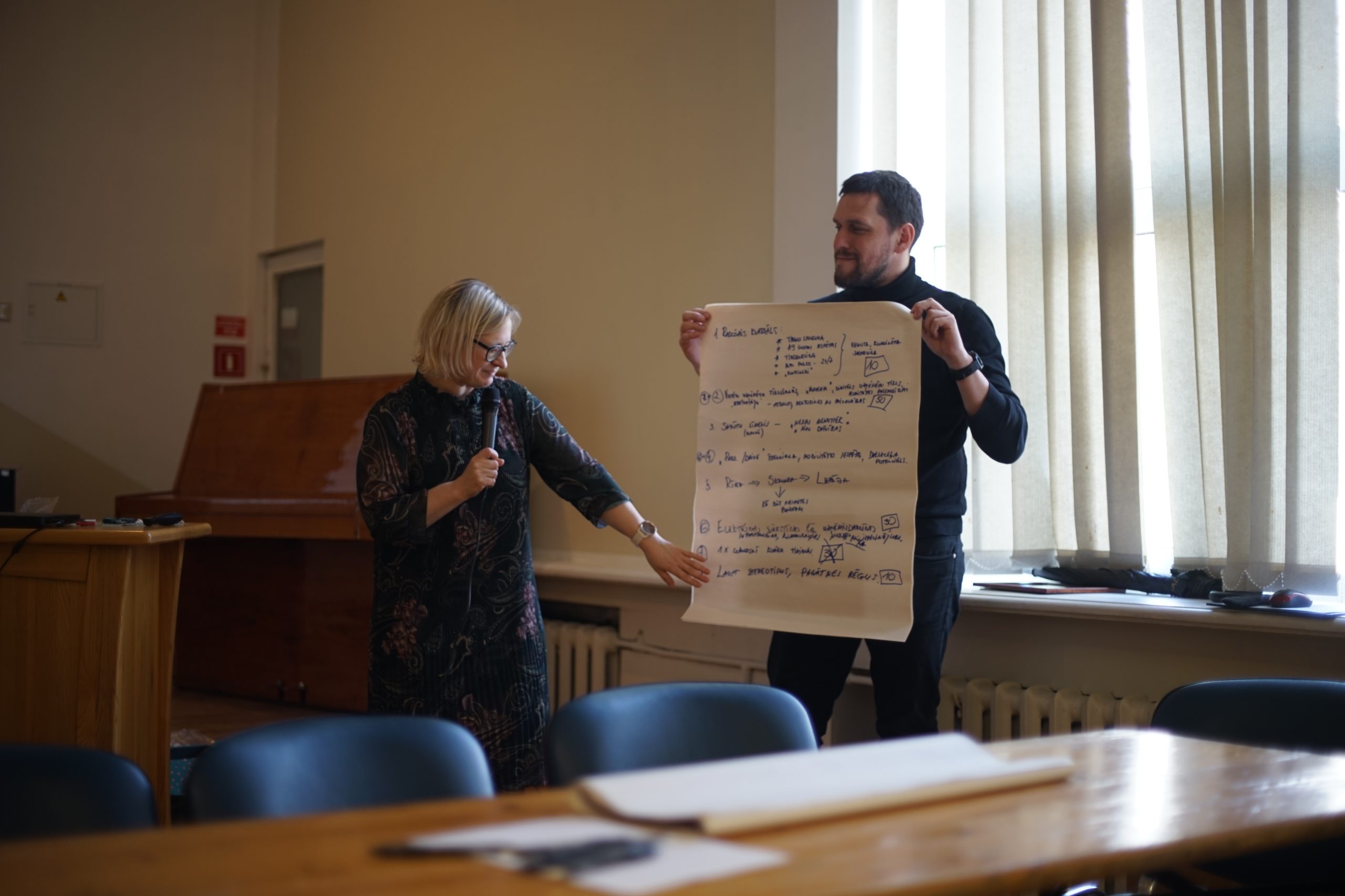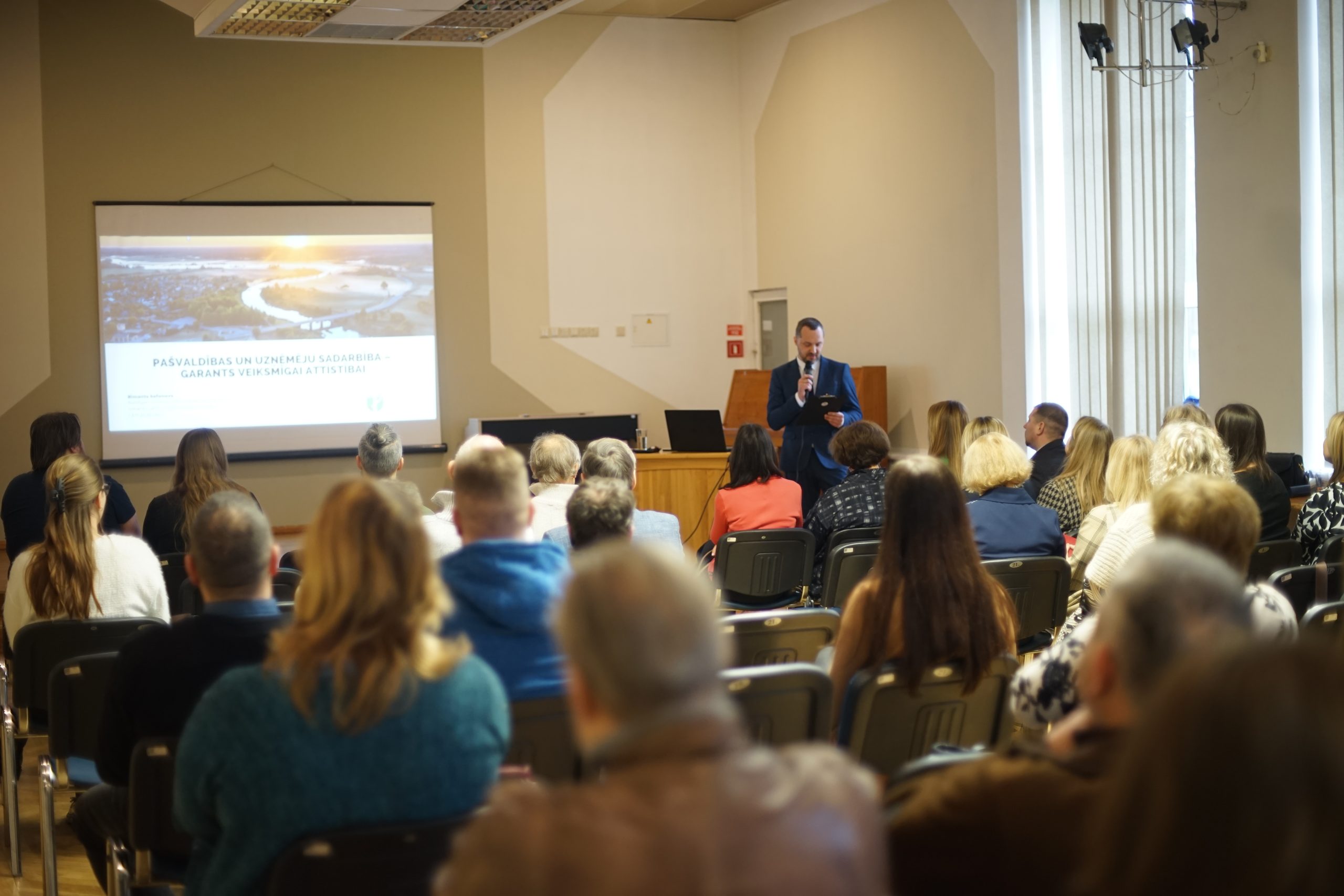 Pasākums notika divās daļās. Pirmajā daļā domes priekšsēdētāja Inese Astaševska un izpilddirektors Rimants Safonovs ikvienu iepazīstināja ar plānotajiem projektiem un attīstības potenciālu Skrundas pusē, kā arī virzienus, kā uzņēmējiem un pašvaldībai savstarpēji sadarboties. Biedrības “Darīsim paši!” administratīvā vadītāja Ieva Birbele stāstīja par aktuālajiem projektiem, kuros uzņēmēji var startēt: “Interese no uzņēmējiem šajā pusē ir liela, un tas ir svarīgi. Gribu ieteikt nebaidīties. Ja ir ideja, jāatnāk uz konsultāciju, lai to pārrunātu, un sameklētu risinājumu, kā to attīstīt. Es redzu, ka Skrundai ir liels potenciāls.”